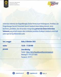 UI dan Bappelitbangda Sukabumi membuka peluang kolaborasi riset bagi peneliti UI di bidang sosial humaniora serta sains, teknologi, dan kesehatan. Jangan lewatkan, yuk ikut rapat daringnya: