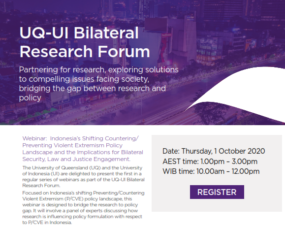 Webinar: Indonesia’s Shifting Countering/ Preventing Violent Extremism Policy Landscape and the Implications for Bilateral Security, Law and Justice Engagement.