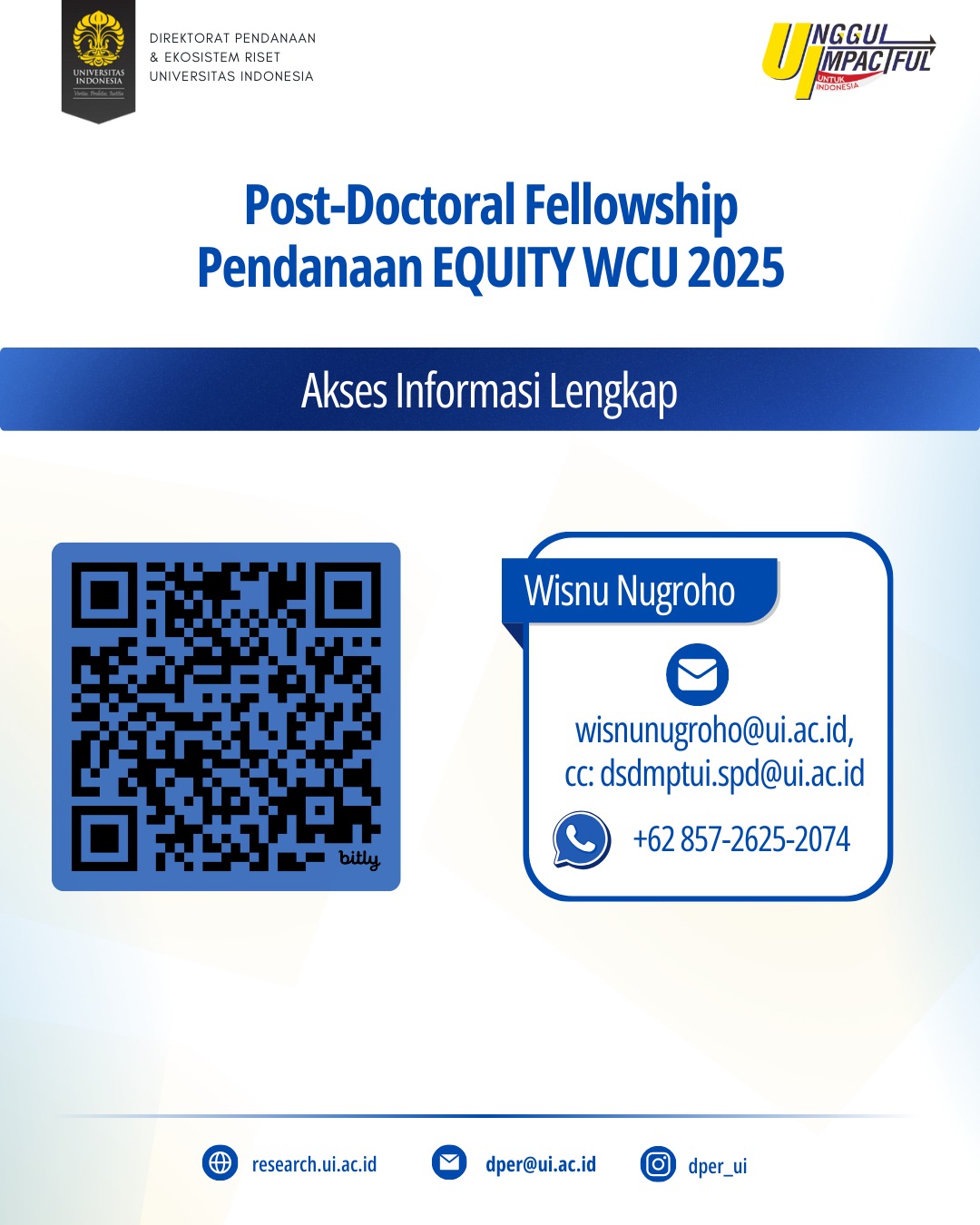 📢 Program Postdoctoral Researcher EQUITY WCU Universitas Indonesia