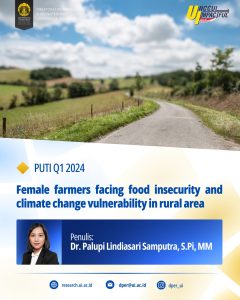 Dr. Palupi Lindiasari Samputra, S.Pi, MM, adalah dosen dan peneliti dari Sekolah Kajian Stratejik dan Global, Universitas Indonesia (SKSG UI) melakukan kajian yang berjudul ” Ketahanan Pangan dan Dampak Perubahan Iklim: Tantangan bagi Petani Perempuan di Daerah Pedesaan”