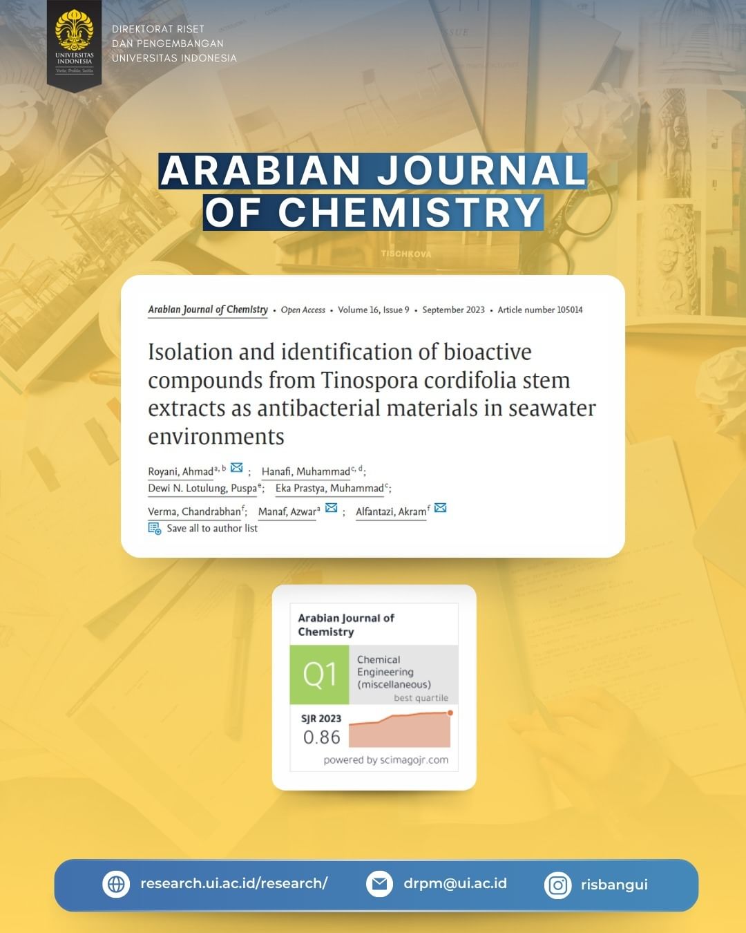 #UniversitasIndonesia #UI #DosenUI #Research #FMIPAUI #AntiKorosi #ArabianJournalofChemistry #RisetUI #Inovasi #SustainableResearch #GreenSynthesis #EnvironmentalScience